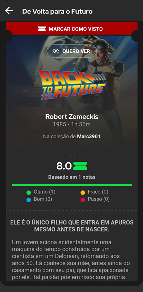Marque filmes que você já assistiu, quer assistir e dê notas de acordo com seu gosto.